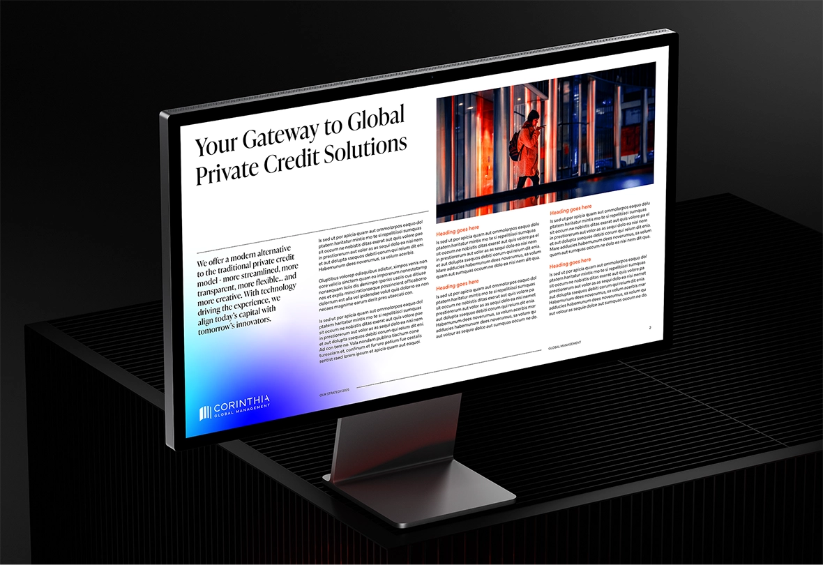 Backed by one of the most experienced teams in the industry, Corinthia launched with a bold ambition: to combine the credibility of proven performance with the agility of a disruptive challenger. They needed a brand that could command immediate trust while signalling a fundamentally different approach to private credit.