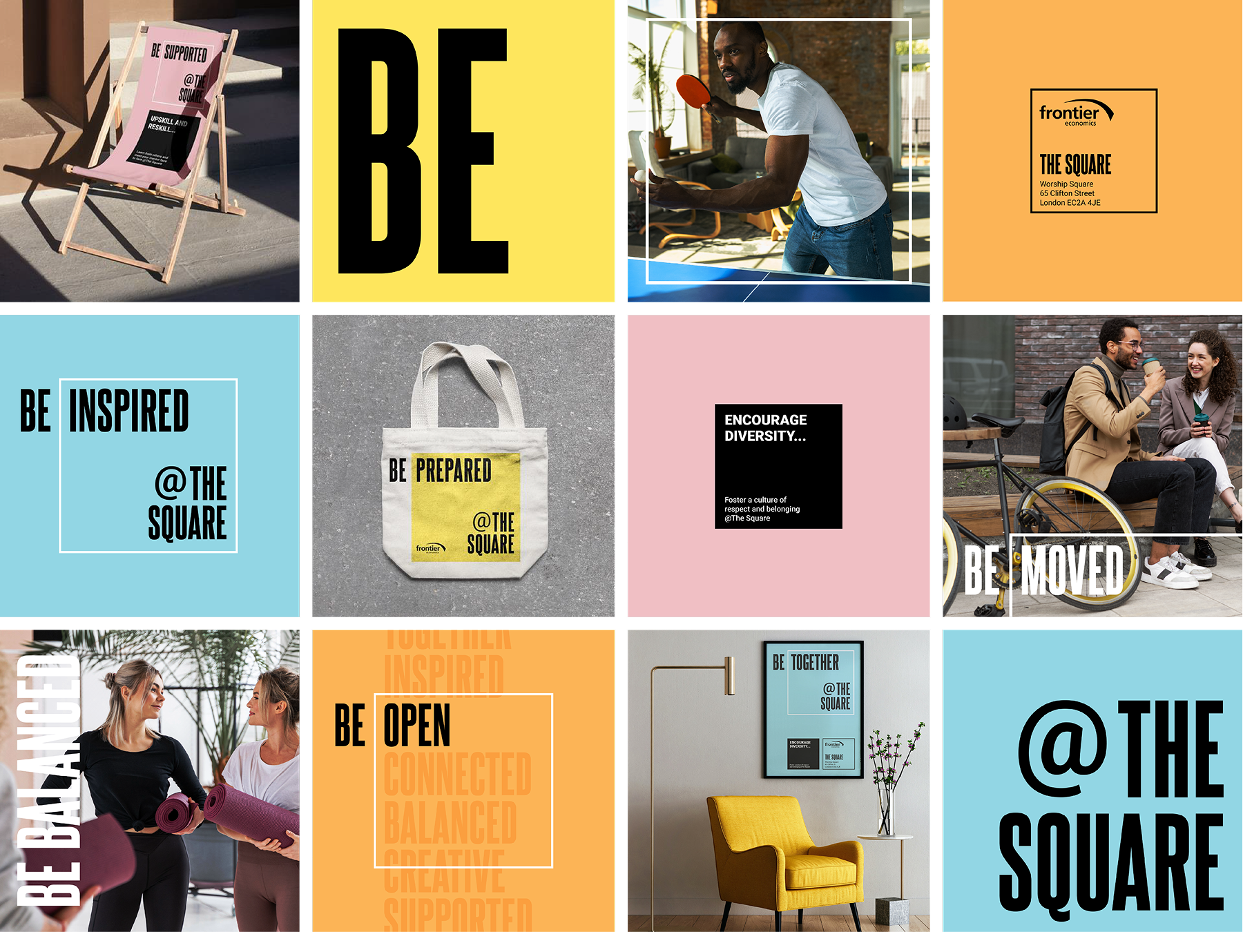 Working around the driving idea of ‘Positive Progress,’ the campaign was rooted in the company’s four core values. The new office name ‘The Square,’ became the starting point for an interactive brand experience. ‘BE@The Square’ became the central campaign message, actively encouraging people back to the workspace with the promise of greater creativity, connection, belonging and inspiration.